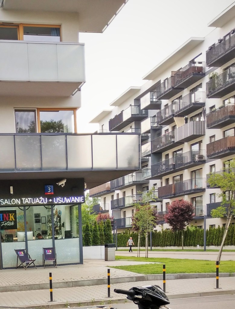 Osiedle Kaliszówka znajduje się na Wawrzyszewie, w miejscu, gdzie jeszcze niedawno mieściły się głównie stare zabudowania przemysłowe (a przedtem wiejskie). Obecnie powstało tu (i nadal powstaje) jedno z nowoczesnych osiedli „deweloperskich”, czyli – jak dla mnie – nic ciekawego. Obeszłam je całe i niewiele rzeczy przykuło moją uwagę. W dobie wyzwań, wspinaczki po szczeblach kariery, presji ciągłego rozwoju i rywalizacji, znajdź przestrzeń na odpoczynek i chwilę relaksu – swoją własną STREFĘ komfortu, której… nikt nie każe Ci opuszczać – zachęca aksamitnym głosem deweloper, a ja od siebie dodaję: dopóki spłacasz kredyt.