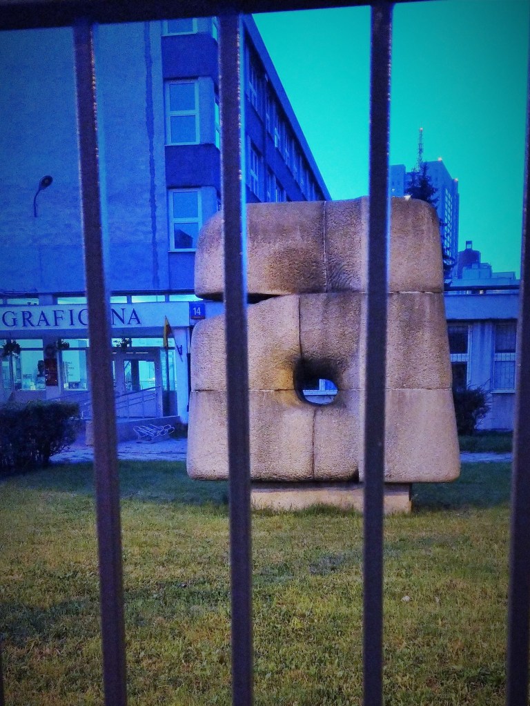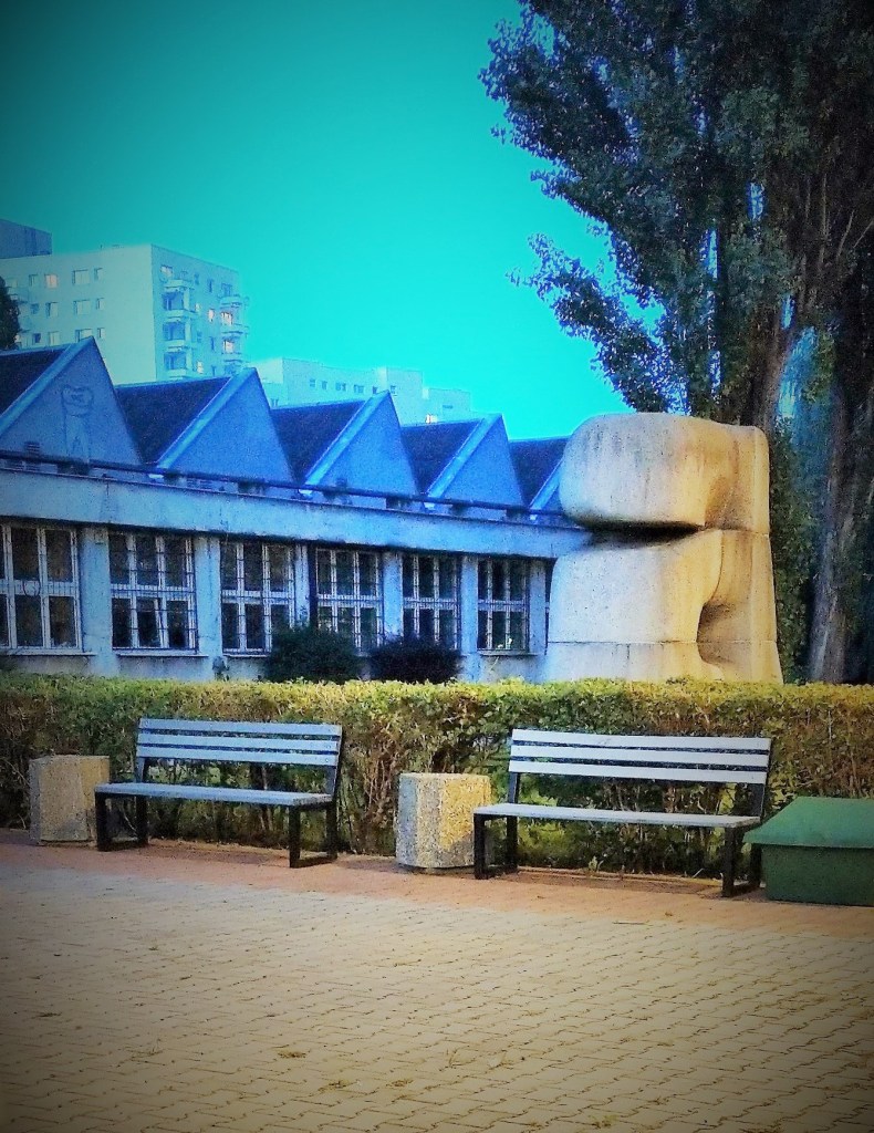 Zdjęcie zza płota, bo był wieczór i szkołę już zamykano.