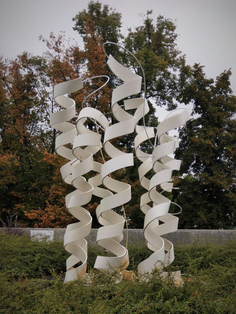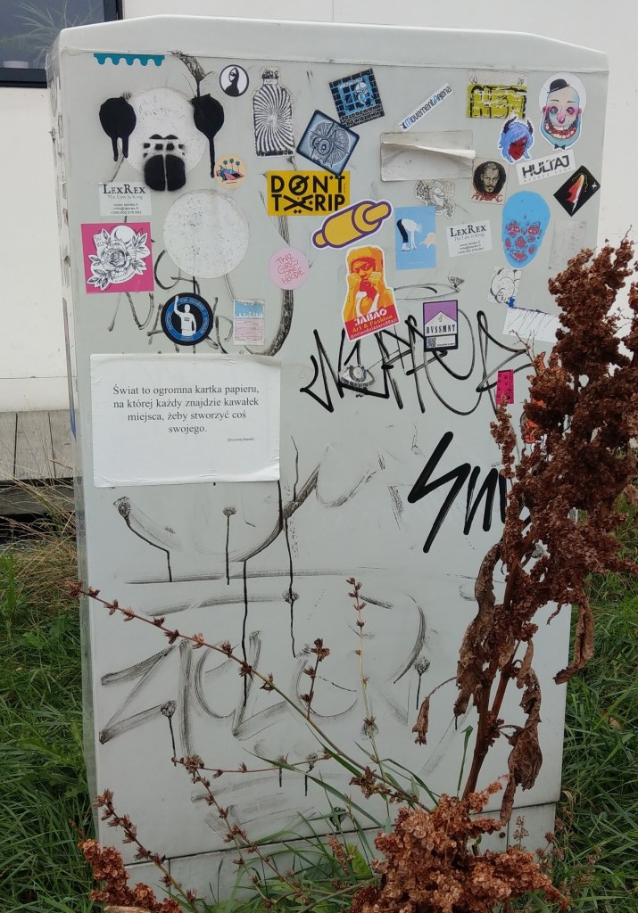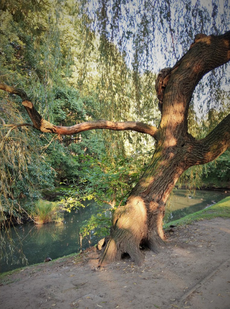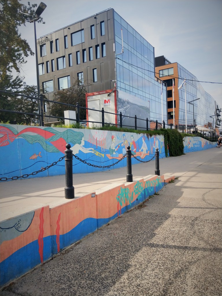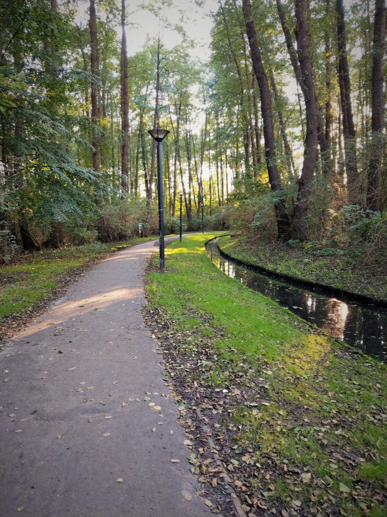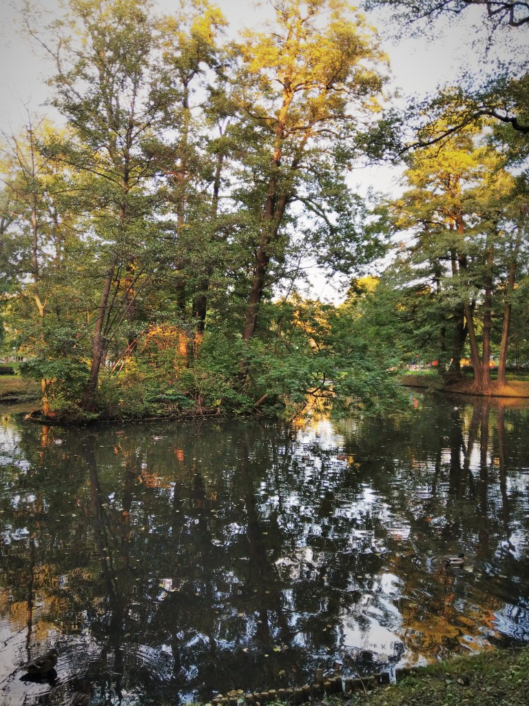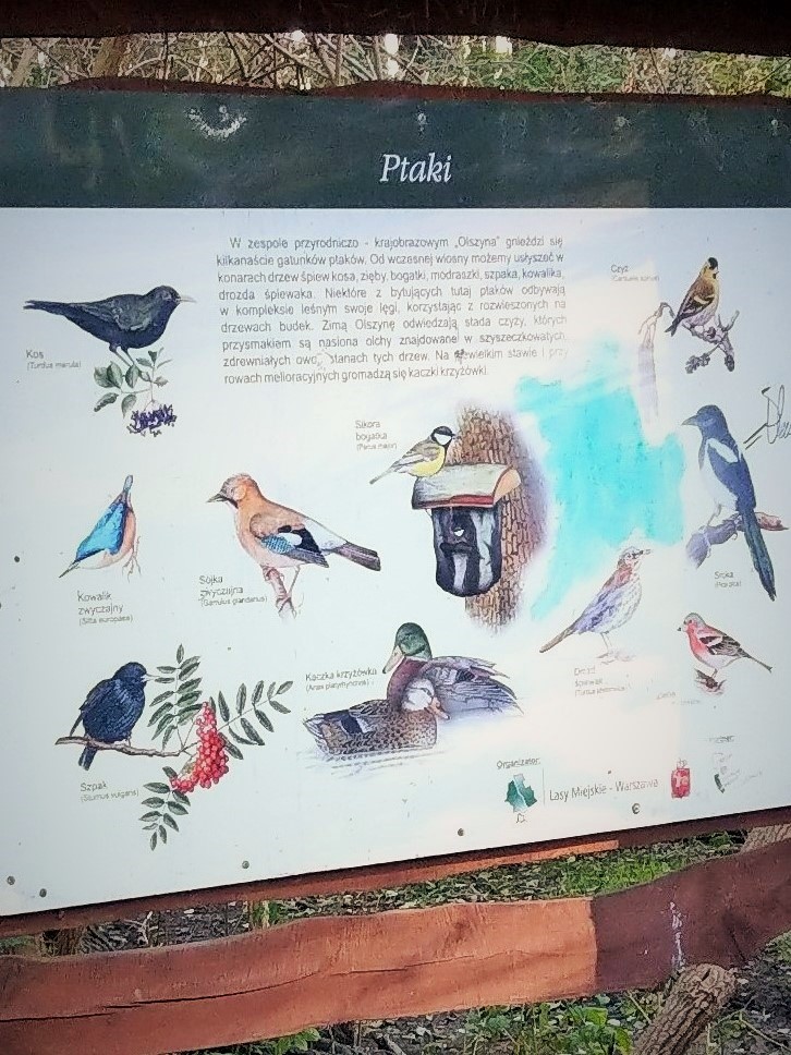 Według tej tablicy można tu spotkać kosy, kowaliki, szpaki, sójki, sikory, drozdy, zięby, sroki, czyże i oczywiście kaczki krzyżówki. Wiosną, wczesnym rankiem słychać ich śpiewy nawet u mnie z okna, chociaż mieszkam po drugiej stronie Trasy. Nie wiem, czy niosą się aż stamtąd, czy część ptaków zajmuje stanowiska na okolicznych drzewach, w każdym razie wiosnę mam rozśpiewaną.