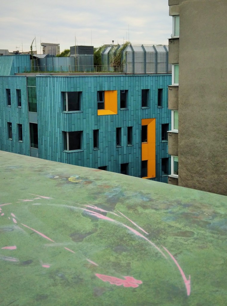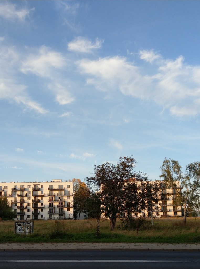 Samo osiedle „Przedwiośnie”, należące do Nauczycielskiej Spółdzielni Budowlano-Mieszkaniowej, najładniej prezentuje się z oddali, z mojej sypialni, zimowym wieczorem (latem zasłaniają je drzewa). Mam taki swój mały „manhattan”. Z bliska i za dnia wygląda przeciętnie.