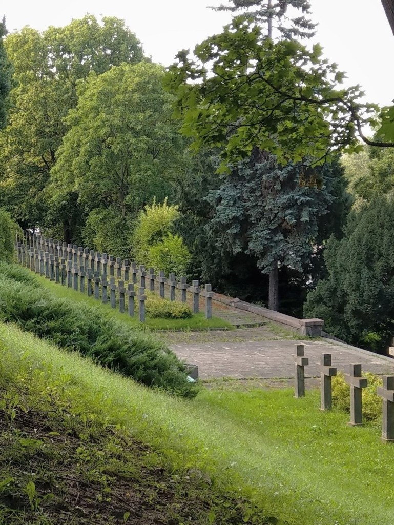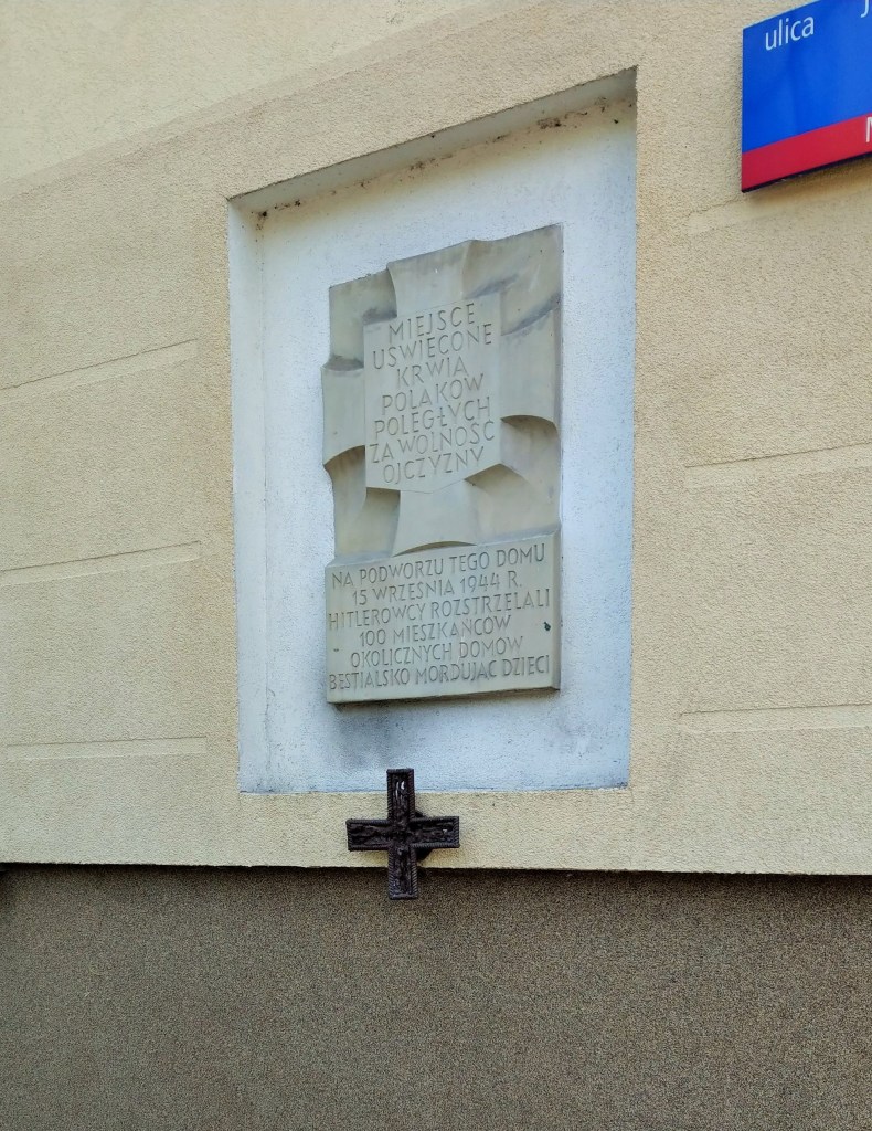 „W miejscu tym została przez Niemców rozstrzelana, gdy błagała o litość dla pozostałych w schronie, Olga Przyłęcka, bo to była Polka”. (Z urodzenia była Rumunką). W schronie, a właściwie w kamienicznej piwnicy na Pradze, powstanie przeżyli moja babcia, mama i wujek. (Mama pamięta tylko huki bomb i to, że spała na sankach – miała pięć lat).