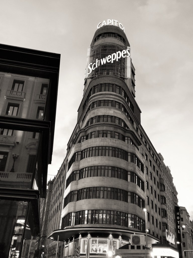 Gran Via – najbardziej chyba znana i reprezentacyjna ulica Madrytu. Dużo biurowców i drogich sklepów. Czuć atmosferę wielkiego miasta.