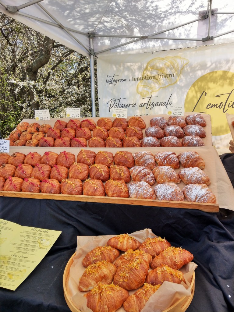 Ser od Włocha, pesto, croissant cytrynowy tym razem, miód czereśniowy, ciasto z malinami, ciasteczko migdałowe, świeca sojowa, mydło „kraftowe” i pomidor. Zajączek od rodziny z Zielonej Góry, a fiołki ze ścieżki za szkołą (trochę przywiędłe, bo wczorajsze). Owoców brak, bo jeszcze nie sezon. Coś takiego jak „Gazeta Mokotowa” nie istnieje, może dlatego że dzielnica dużo, dużo większa.