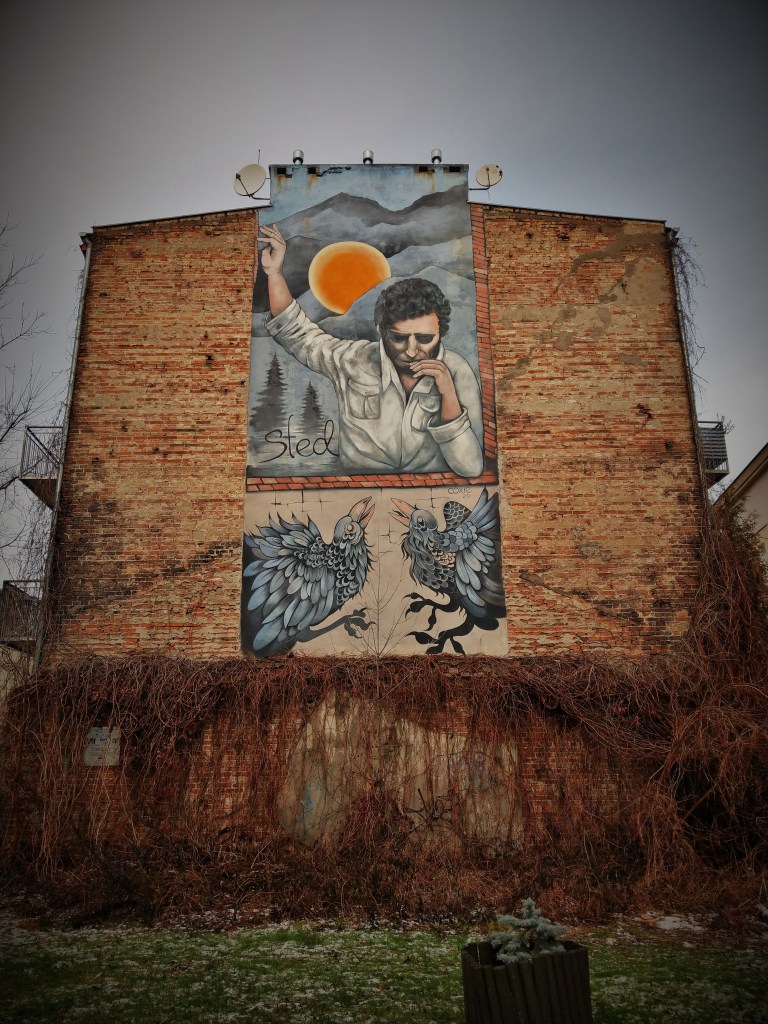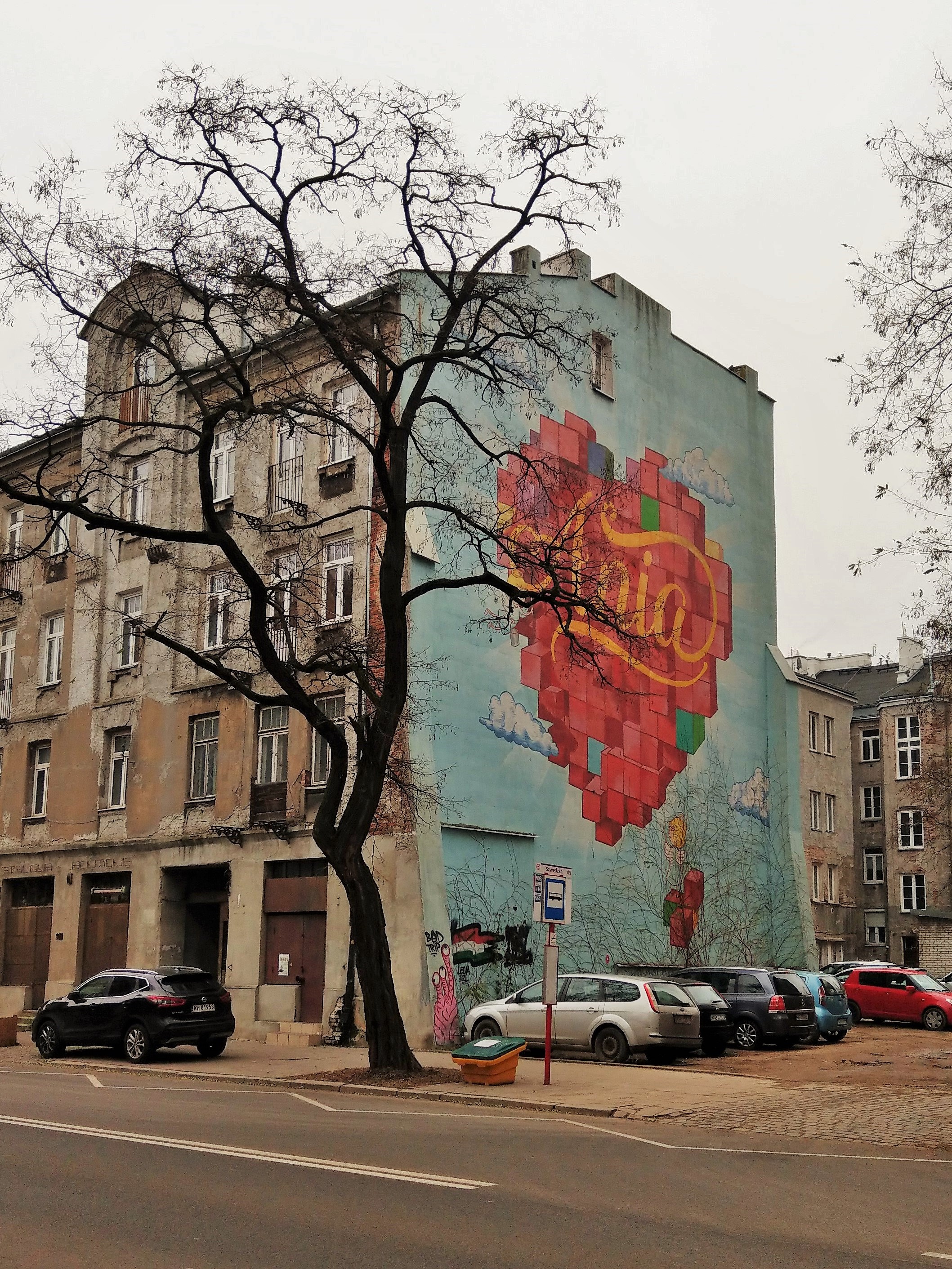 Napis „Bailout folks!” można przetłumaczyć jako „Dofinansowania, ludziska!”, ale nie wygląda, żeby ten apel został wysłuchany. Wręcz przeciwnie – po drugiej stronie budynku był mural poświęcony Stanisławowi Grzesiukowi, ale go zamalowano. Zresztą i tak nie byłby zbyt widoczny, bo postawiono przed nim biurowiec.