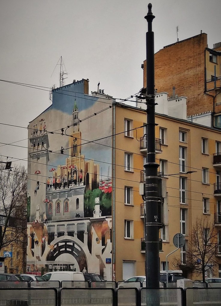 Jedyne działające tutaj nadal zakłady „przemysłowe” to zajezdnie – tramwajowa i autobusowa z lat 50. Na płocie mural warszawski – można rozpoznać Pałac Kultury, rotundę, dworzec centralny i bloki Osiedla Za Żelazną Bramą. Oprócz tego dużo pustych ulic i – co trochę dziwne – tylko jeden autobus.