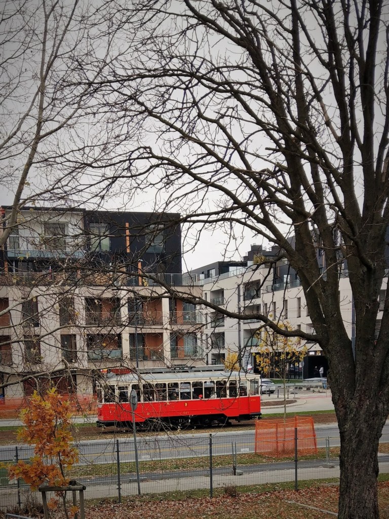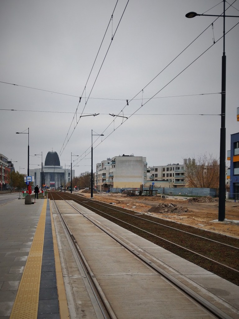 A tu ciekawostka historyczno-geodezyjna. Z daleka, z przystanku, ale było za zimno, żeby robić sobie wycieczkę bliżej, bo autobus mógłby mi uciec. Na planie pierwszym pomnik por. Jana Rodowicza „Anody”, a niepozorna konstrukcja za nim to punkt triangulacyjny, konkretnie „punkt osnowy geodezyjnej I klasy”, jeden z ostatnich, który używany był przez geodetów podczas budowy dzielnicy oraz metra. Obecnie, zwłaszcza w mieście, stanowią już rzadkość. Punkty triangulacyjne stanowią podstawę ścisłych pomiarów większych obszarów. Wyznaczają wierzchołek trójkąta sieci triangulacyjnej (która składa się, jak nazwa wskazuje, z trójkątów, połączonych ze sobą). W punktach triangulacyjnych mierzy się kąty takiego trójkąta i… co dalej, to trzeba pytać geodetów. Ten tutaj doczekał się tablicy pamiątkowej.